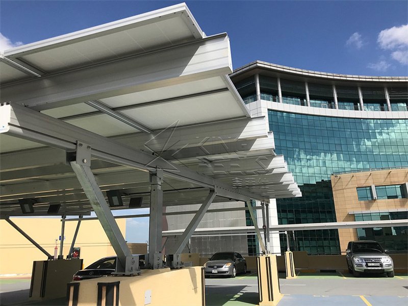 Kingfeels Solar Aluminium Structure Carport é adequado para fins residenciais e comerciais. A maioria de seus componentes são altamente montados na fábrica, o que economiza tempo e custo de instalação.